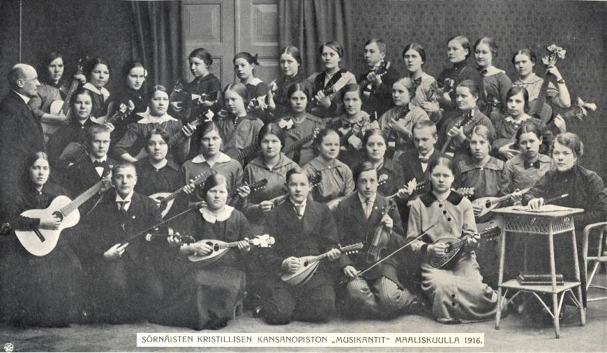 Sörnäisten Kristillisen Kansanopiston musikantit maaliskuulla 1916